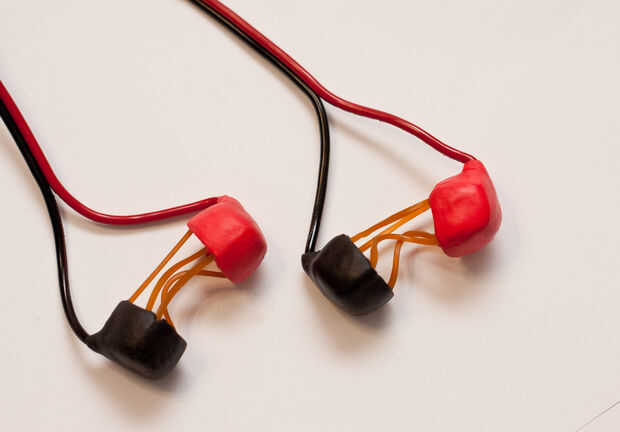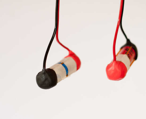 Entonces empújelo alrededor de los cilindros y sobre las arandelas para que lo englobe les. Acabar con la superficie externa de la Sugru (tal vez mejor que yo he hecho) y colgó para no dejar una impresión plana mientras se secan.