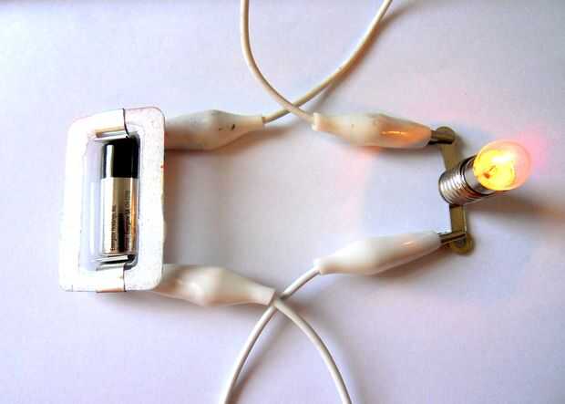 esto es una forma rápida para mantener los cables a los terminales de un AAA o una batería AA para los experimentos eléctricos. Dos pinzas modificados están montados en un espaciador de madera gruesa de 3/4". Los muelles de pinza para la ropa mantien
