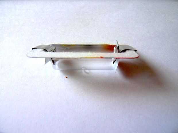 Luego tomar las tiras de papel y cortar para que caben en la cubierta. Doblar el papel varias veces, para hacerlo más grueso. Luego doble por la parte exterior de la cubierta, como se muestra arriba. Si desea que la conexión de papel para pegar, pegar en la tapa podría ser una buena idea.