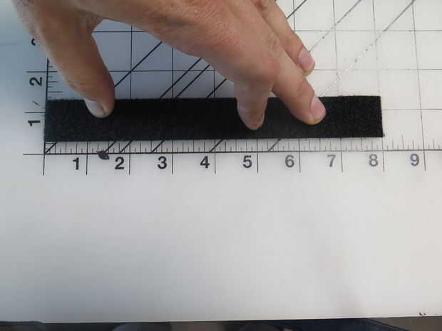 Para obtener la longitud de las correas derecha, lazo de la cinta de velcro alrededor del tubo superior de la bicicleta a través de la abertura del recipiente 6-pack. 8" parece una buena longitud - necesitarás dos de ellas también.