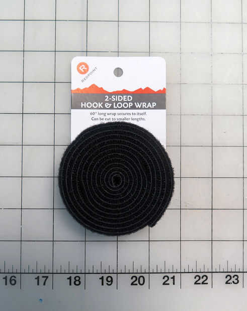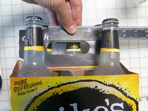 Obtener un 1" rollo de velcro de 2 lados - este y un par de tijeras es todo lo que necesitas. A continuación, el corte de mango en un 6-pack contenedor-mina la medida fue aproximadamente 3". Cortar dos tiras de 3" para hacer las bandas superior e inferior.