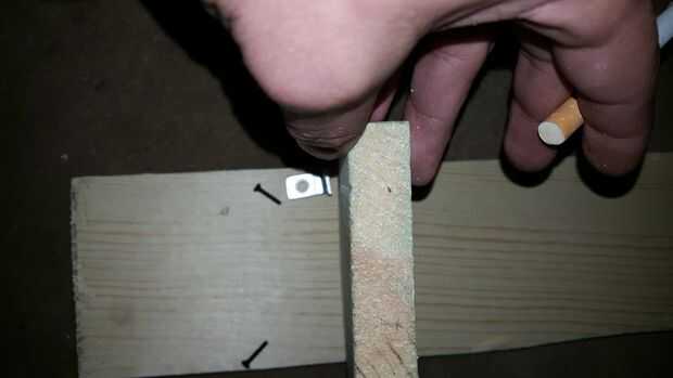 El sostenedor de botella de vino al revés es bastante fácil. Es necesario utilizar una sierra para cortar la madera. Empezar por hacer el marco. Desea que el marco sea aproximadamente del tamaño de una botella de vino. Corté mis 3 pulgadas de ancho por 12 pulgadas de largo. Corte de esta recta que utilicé una sierra de calar. Habrá otra pieza de madera que se necesitará para cortar. Usted quiere cortar esta tres pulgadas de ancho para que quede con la primera pieza que se corta. Esto hice un incluso de 3 pulgadas por 3 pulgadas cuadrado. Dos de estas piezas fueron cortadas de una pieza de espesor de media pulgada de madera de pino. En 3 pulgadas por 3 pulgadas pieza necesita perforar un agujero en él. Es donde pasará la botella de vino. Usé una broca de 1,5 pulgadas para cortar este orificio. Asegúrese de cortar este orificio en la pieza central de madera.