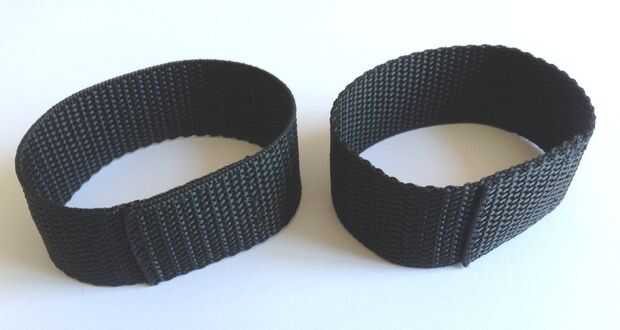 Cortar dos tiras de nylon y derretir suavemente el extremo para evitar que desentrañar. Cada tira debe ser lo suficientemente largos para bucle alrededor de la botella. Añadir una pulgada o tan de la superposición. Forma el nailon en forma de bucle, coloque en la botella para obtener la longitud correcta y deslícelo suavemente hacia fuera a lo de la puntada.