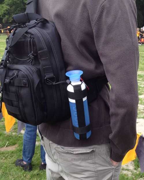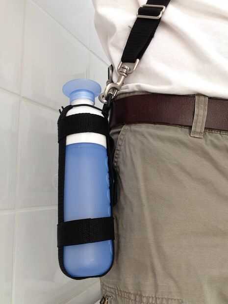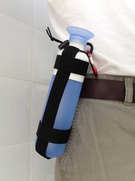 Puede clip en tu mochila (fotos 3 y 4), en el cinturón (Foto 5) o simplemente llevar con una correa de hombro pequeño (foto 6).