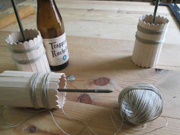 Así que corte unas bandas de cuero de un viejo sofá - lo siento abuela, es decir, para el corte de su sofá, no para cortar mi abuela - pegada a la parte interior de las flores y añadido algunos cáñamo cuerda para resistencia mecánica adicional. Y para algunos parece buena, también.