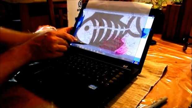Sostener el papel en la pantalla con alguna cinta azul (cinta adhesiva).