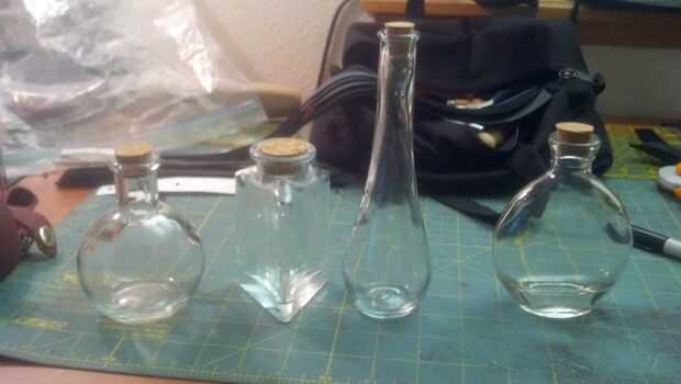 Este proceso y el diseño se pueden aplicar a cualquier número de tamaños y formas de la botella y se pueden hacer con cualquier tipo de material o cuero. Yo se manifestarán con una botella de "vaso" de vidrio que se puede encontrar fácilmente en Michaels. A continuación usted tendrá algunos cuero obviamente. Se utilizará aceite negro curtida piel, sin embargo, he hecho estos de Veg-Tan y Latigo así. Obtener mi cuero de Fábrica de cuero de Tandy. Usted necesitará un pedazo largo decente, pero puede ser más bien flaco. Debe ser por lo menos 3/4" de ancho. Tandys mayoría vender chatarra las correas de cuero e incluso por la libra, por lo que la piel no debe ser demasiado cara.