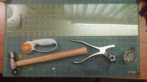Entonces usted necesitará una manera de cortar el cuero. Utilizo un cortador circular de tela llana, pero un cuchillo del exacto, navaja o tijeras incluso posiblemente funcionaría.