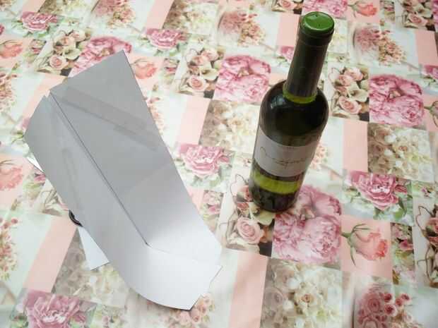 Experimento con pedazos de papel tratando de crear un botellero. Tenga en cuenta las dimensiones de la botella que se inclinan hacia atrás pero no perder estabilidad.
