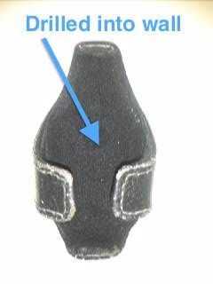 Atornille el soporte en la pared. El tornillo debe encajar en el agujero que quedó de cuando se quita el clip. Aplique el pegamento en la cabeza del tornillo expuesta y cubierta con el punto de la tela. Asegúrese de que el soporte se coloca para permitir que el mango del cepillo bloquear con las cerdas hacia abajo.