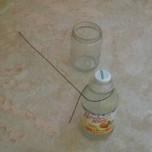 Puesto que el cable es elástico, tiene demasiado inclinarla un poco para hacer el anillo de tamaño que desee. Utilicé el círculo de diámetro más pequeño en la zona de agarre de la mano de una botella de jugo para doblar el anillo que se adapta a la jarra.