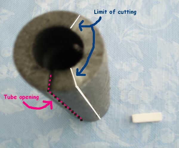 La marca a lo largo de la longitud del aislamiento en esos dos puntos. No quiere cortar ranuras más allá de estas líneas.