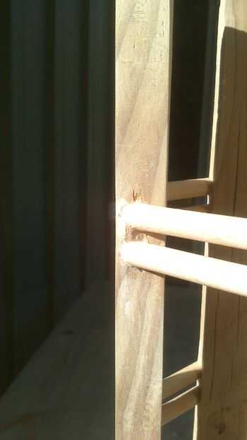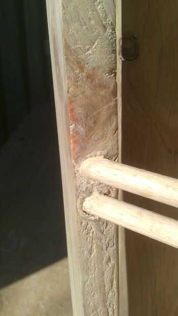 Mientras que perforar muchos agujeros para ajustar la altura de las barras, había unos huecos para rellenar. Por otra parte, la madera fue dividida en algunos lugares y los pilares no eran perfectamente colocados.