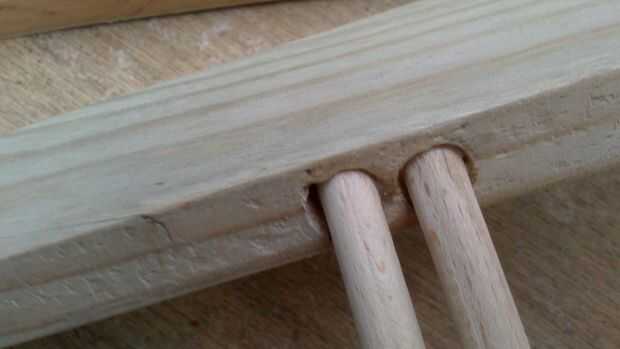 Puede ver el resultado en la fotografía. No te preocupes los vacíos que vemos alrededor de la barra de agujeros, a llenarlos con pasta de madera más adelante.
