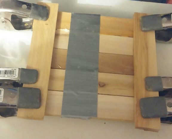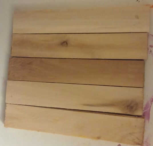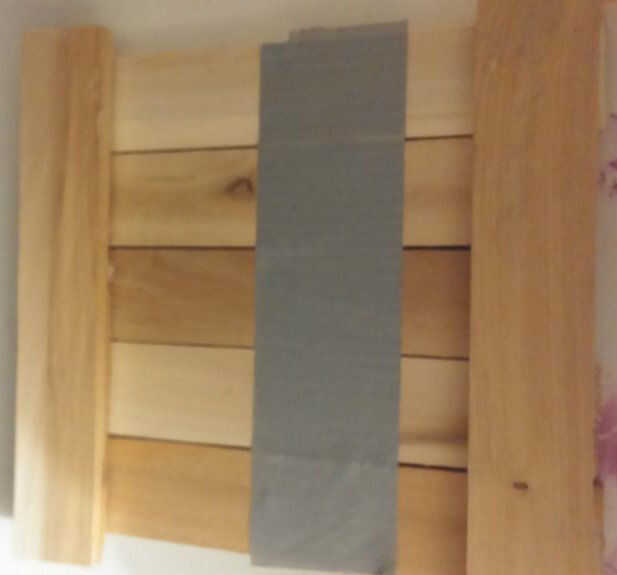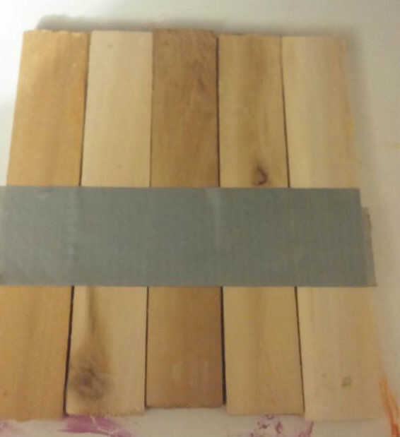 1. tomar 5 piezas de madera y pegarlas con cinta adhesiva.