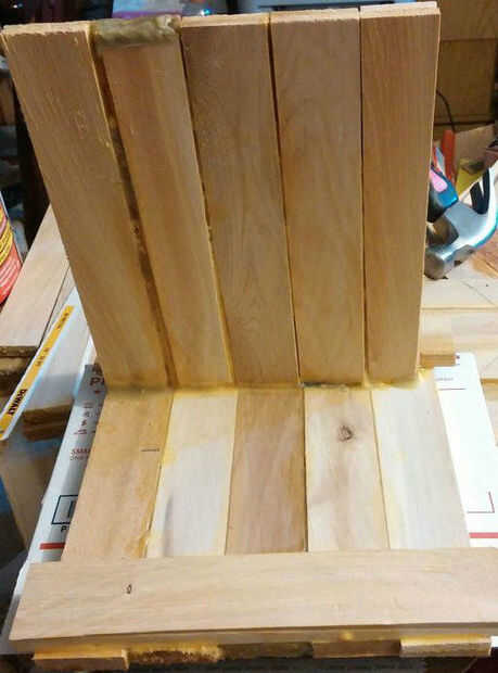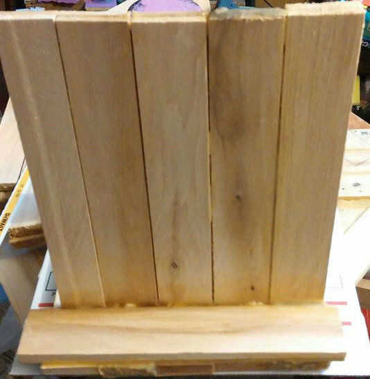 1. pegue 5 pedazos de cuña de madera en sus extremos para el travesaño frente a uno de los travesaños encolados en el paso anterior