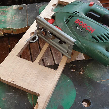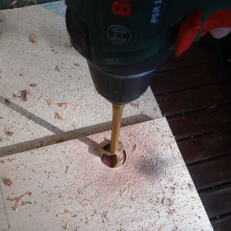4. Utilice una broca de madera de 8mm para perforar las esquinas de las ranuras.