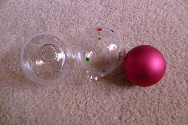 1. bolas de adorno de vidrio Navidad. Experimenté con 3 tamaños diferentes. Para el titular de la esponja de bronce final, usé las bolas más comúnmente tamaños (uno rojo en la foto).