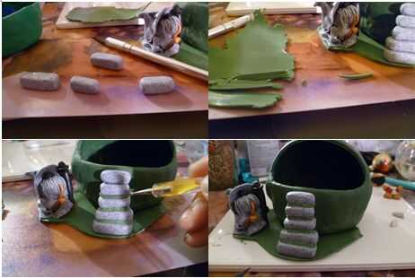 Siga los cuadros para crear la casa de Hobbit y sus visitantes.