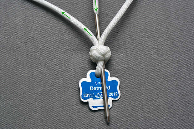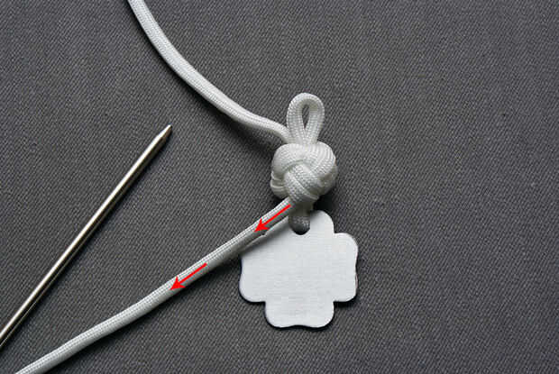 I used to see this as a soldier. Es una modificación fácil usando paracord. 1. medir una pieza de paracord tan larga como la cadena de la bola.2. Tire hacia fuera seis filamentos interiores dejando uno en el manto.3. Haga un nudo en un extremo de la