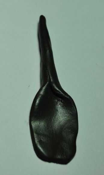 Estirar la mitad superior de Sugru negro en una hebra gruesa. Aplane la otra mitad.