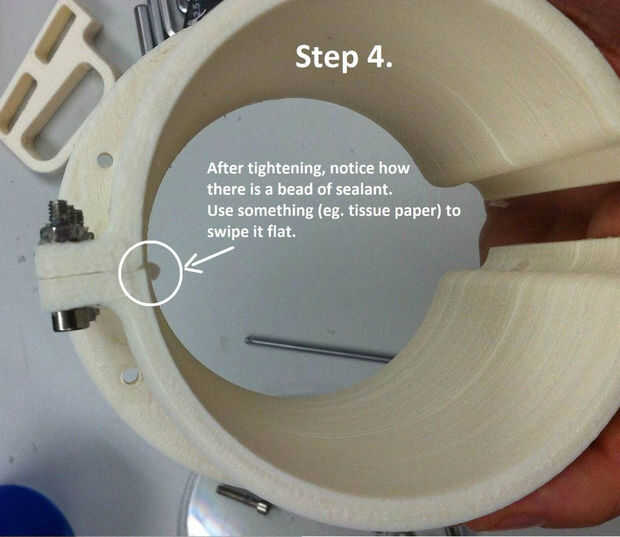 D. Atornille todo juntos sin cualquier silicona para probar el ajuste de todo y familiarizarse. Luego Desatornillar todo.