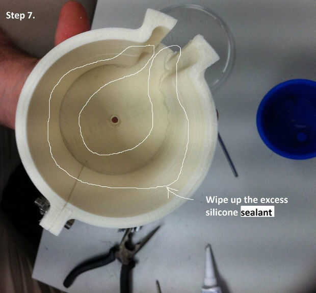 G. Limpie el interior del molde para quitar cualquier goma que ha exprimido hacia fuera.