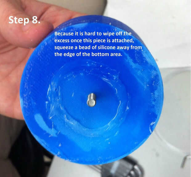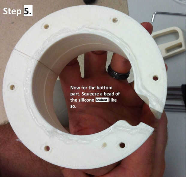 H. Aplique un cordón de silicón de RTV para el pedazo del molde de centro, más lejos de la orilla.