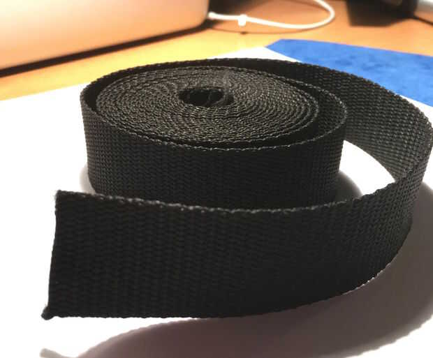 - 40cm de correa que puede encontrar en cualquier tienda, usaba un 30mm de ancho, pero se puede ir hasta 40; Usted puede comprar 1m por ejemplo y luego cortan fácilmente otra vez en el país para adaptarse a su construcción.
