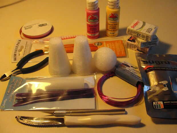 -Espuma de poliestireno: huevo con forma de piezas para las cabeza, piezas en forma de cono para el cuerpo.