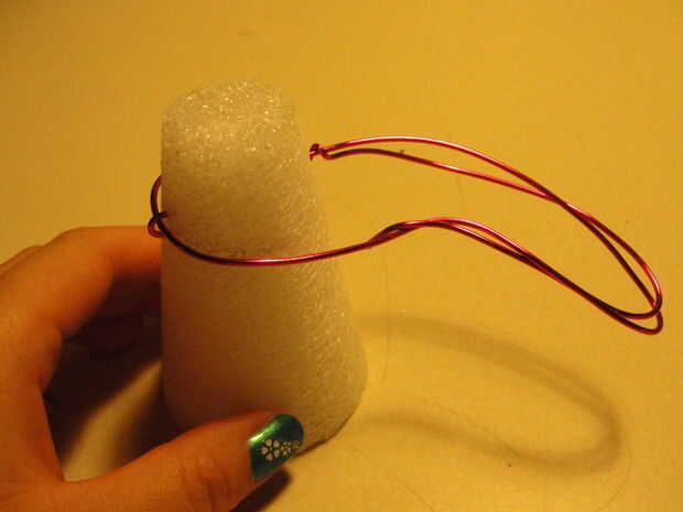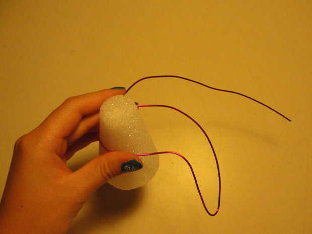 Hacer los brazos de alambre para que curva en el medio, como el conejito es abrazar algo. Pega un extremo del alambre en la espuma de poliestireno, y el extremo exterior envuelve el conejo una vez para la estabilidad.