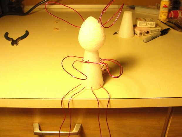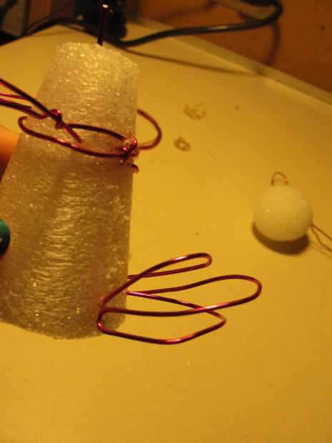 También, utilizar dos piezas de alambre pequeño para un cuello para mantener la cabeza.