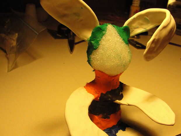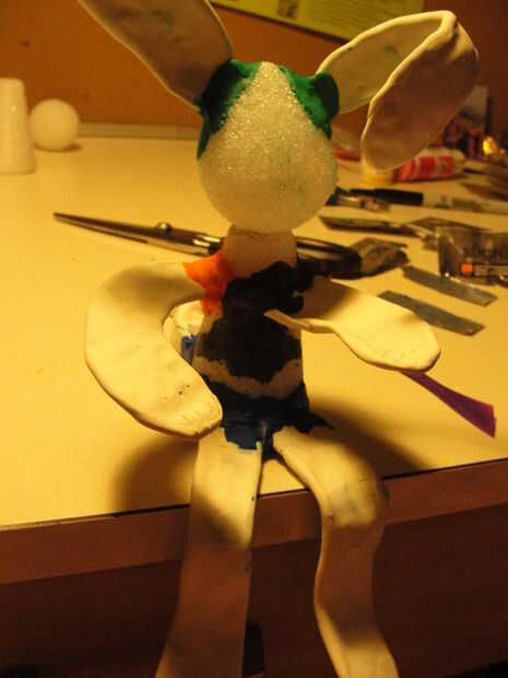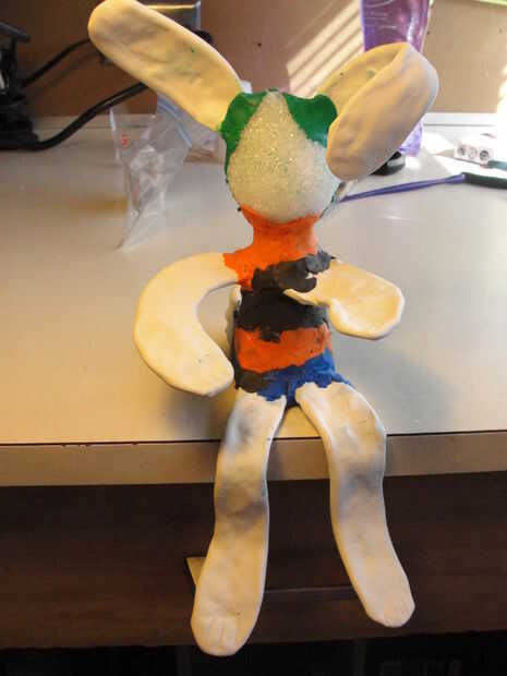 Hizo los brazos y las piernas y la cola primero, luego se trasladaron a las orejas (con la cabeza separada todavía).