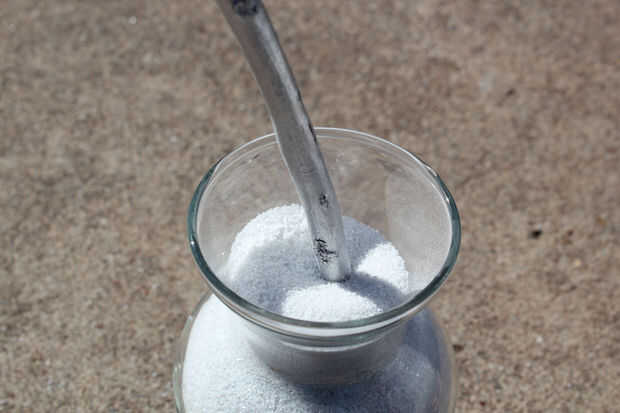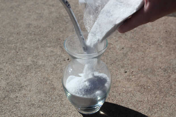 Mantenga presionado el stick en la posición deseada y verter la arena en el frasco. Arena es la mejor manera para mantener el palillo en su lugar y que el vaso caiga.