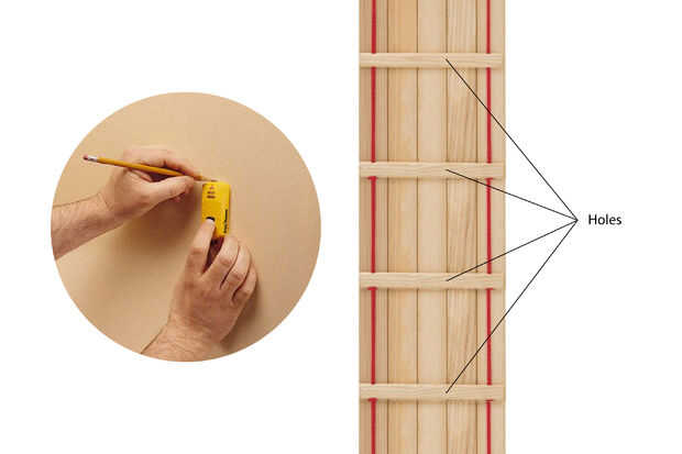 2. Taladre orificios en cada travesaño de madera de su trineo. Estos agujeros deben estar alineados.