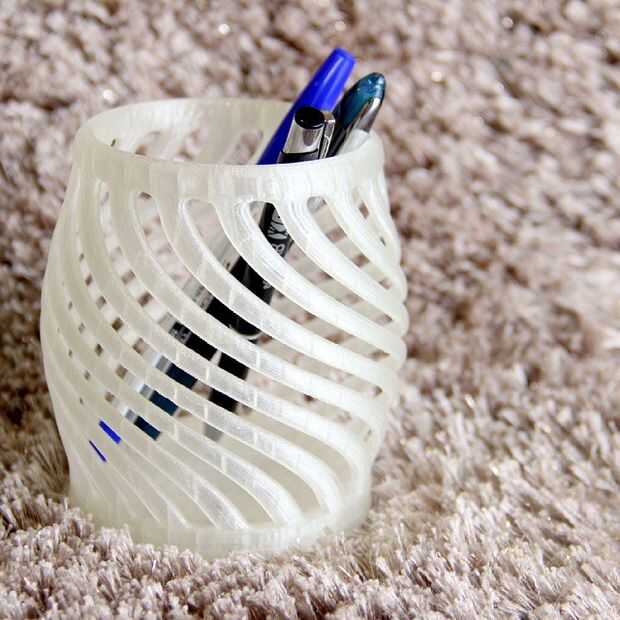 Para nosotros, este sostenedor de la pluma era una buena excusa para probar algunos de nuestros nuevos pedacitos de herramienta giratoria. El resultado fue aceptable para un primer intento con estas brocas, así que hemos pensado el que compartiríamos
