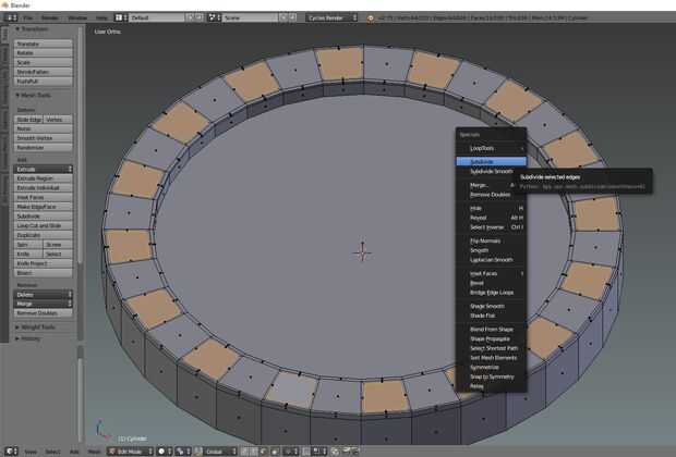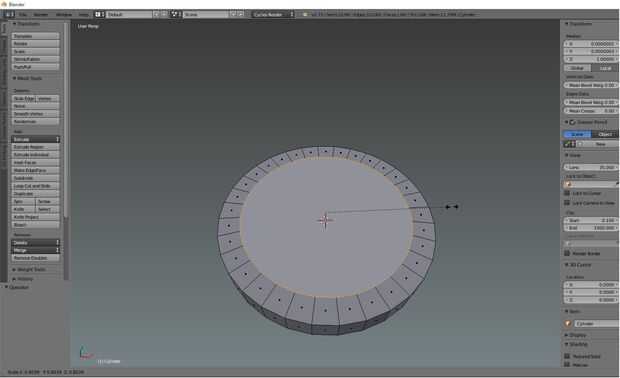 - En nuestro modelo y con las mismas caras seleccionadas, haga clic en w y dará cuenta ahora que ya tenemos una opción llamada herramientas de bucles. Seleccione los círculos de ese menú que se convertirá sus rectángulos en círculos. Escala hacia abajo para que encajan dentro del inserto que hicimos.