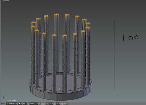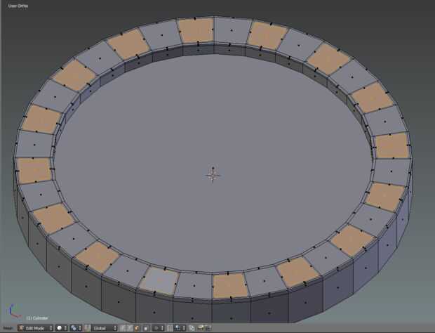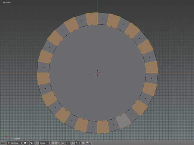 - Desde la vista superior (puedes acceder a la vista superior pulsando 7 en teclado numérico) seleccionadas 16 caras de los 32 que tienen tal como se muestra en la imagen.