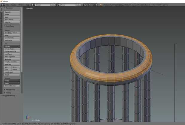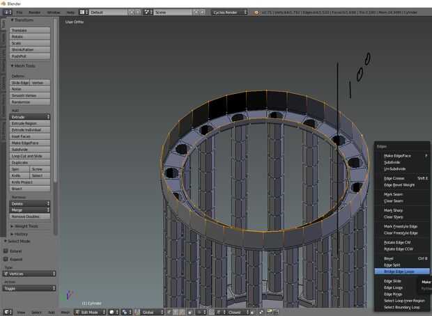 - ahora desde la vista superior Seleccione las superior 2 caras y seleccione los bucles se muestra borde y puente pulsando Ctrl + E luego puente edge loops.