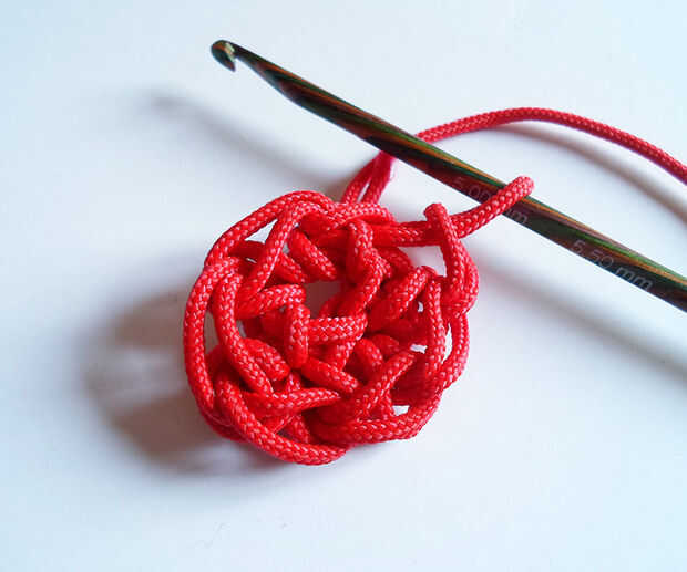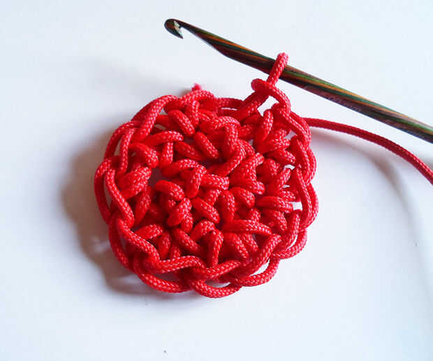 Cadena de 1 y 2 crochets solo en cada puntada, para un total de crochets solo 6. Puntada de resbalón en la primera puntada al final de la ronda.