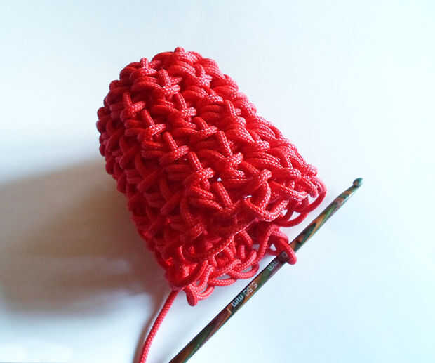Después de 6 rondas, el sostenedor de la pluma estará totalmente formado y finalmente puede hacer una puntada de resbalón en el primer single crochet al final de la ronda.