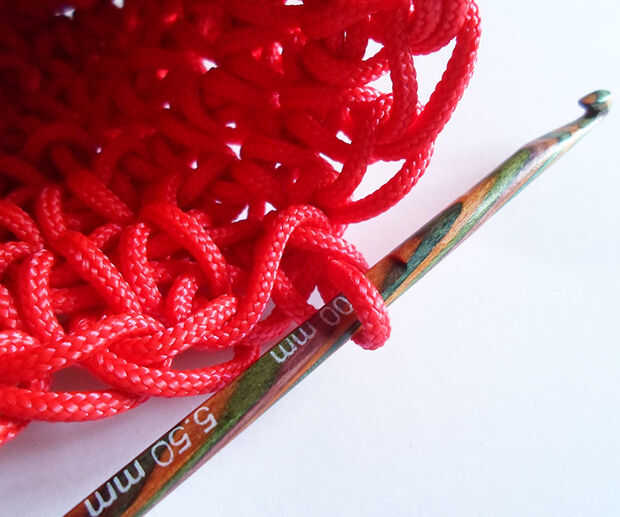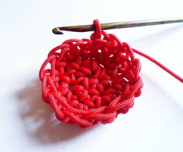 Ahora cadena 1 y hacer 1 punto bajo en cada puntada alrededor. De esta manera su trabajo empezará a doblar y "cerrar".