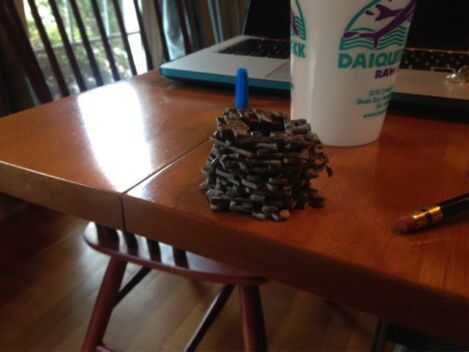 Esta imagen muestra lo que parece el envase desde el lado. Como pueden ver hay unas diez capas de este contenedor. Mitad con cinco piezas de cada capa. Esta visión le permite ver la altura de los contenedores y su aspecto estructural. Como veis el envase es muy durable y poner juntos muy bien. Esto es importante para que los bolígrafos y lápices están bien protegidos. También asegúrese de pegar las piezas boca arriba para que el contenedor bastante. Puesto que debe ser de todos los diferentes rompecabezas parece un poco cobarde pero eso lo hace divertido!
