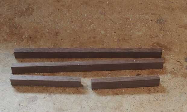 También corté algunos 1/4 "x 7/16" piezas de nogal para el acento superior, alineando a las articulaciones de la caja del espejo.