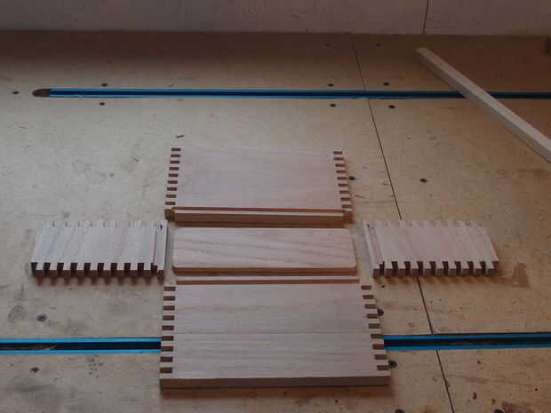 Servilletas vienen en todos los tamaños para tomar en cuenta lo que normalmente usas. Los que utilizamos son 6 1/2" cuadrado más o menos. Ya que estaba usando material de roble sólido 1/2"(7/16 real) cortar la parte delantera y espalda piezas 5" alto y 7 5/8" de largo. Me da 6 3/4" interior. Que corte los lados 5" altos y 3" de ancho, pero que fue arbitraria, como la altura algo como registro de como te quedas al 1/4 más cercano ".