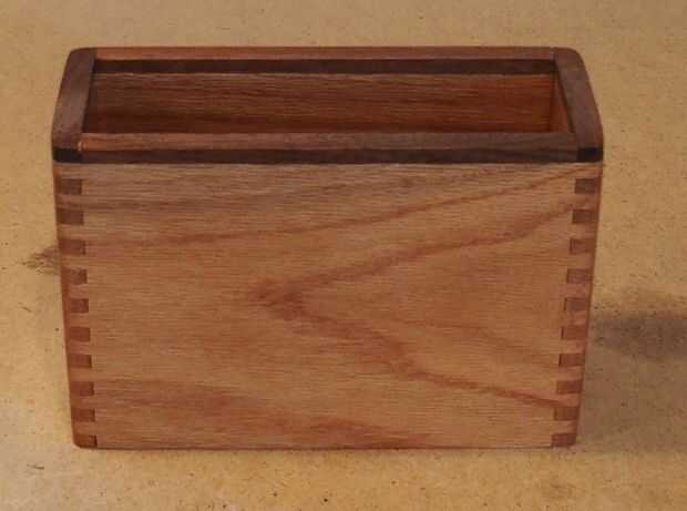 Cuando arme algo con un acabado interior, termine el interior superficies antes del montaje. Esto es especialmente cierto con pequeños proyectos utilizando juntas de caja y cola de Milano. Realmente utilizar los acabados como mi empalme caja "pegamento" para no tener el problema de las esquinas interiores penetre pegamento y tener que rehacer el interior. Caja juntas encajan tan bien si se ejecuta correctamente su router, nunca vendrá aparte. Aplicar acabado con un cepillo todo el interior superficies comunes y montar inmediatamente usando un martillo de goma, asegurándose de que todas las esquinas estancia cuadradas.