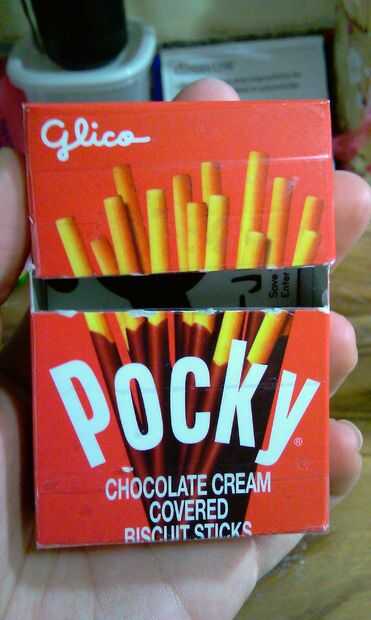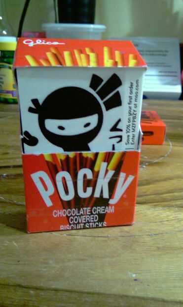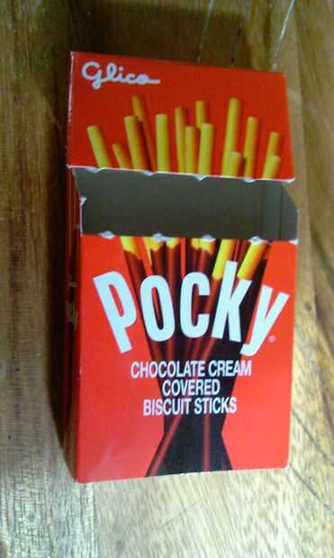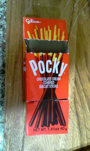 1 caja pequeña de Pocky - el tipo de monodosis (la clase tienen en Walmart es la mejor)
