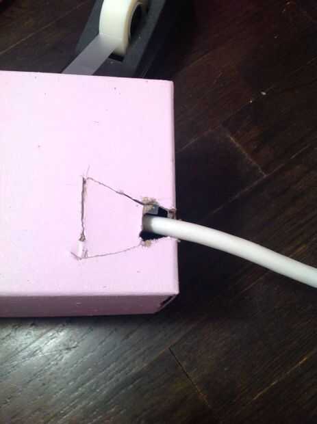 Corte una pequeña aleta en la parte inferior de la caja cerca del agujero eran el cable será de la regleta.