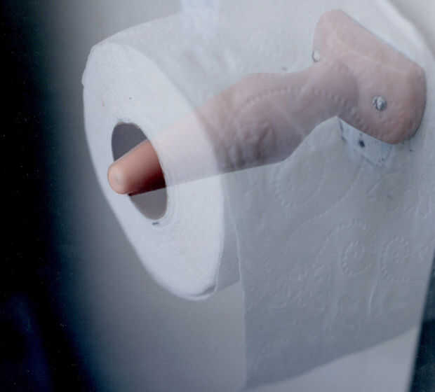Aprendí esto de un compañero de trabajo que había miedo a su hija adolescente con él. Se trata de una simple broma que se puede hacer rápidamente y en cualquier lugar puede encontrar papel higiénico (o toallas de papel). Simplemente es dibujar una ar