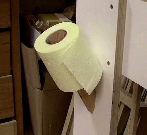 hice una de estas, ilustrado en la foto principal para un proyecto de arte humorístico en la Universidad. Ahora que tengo una casa con ningún sostenedor de papel higiénico en el baño, pensé por qué no Cave hacia fuera y volver a instalarlo.Aquí está